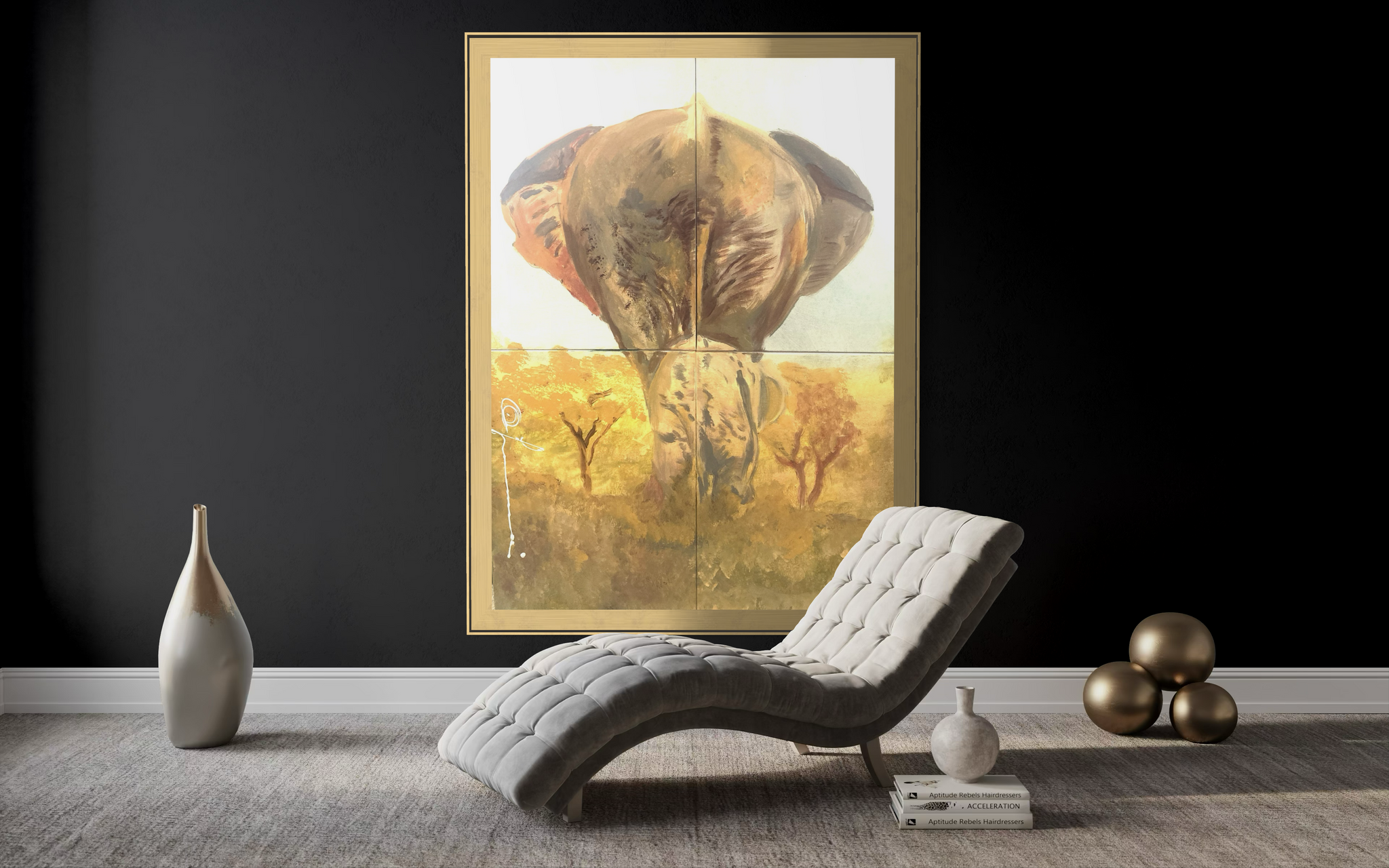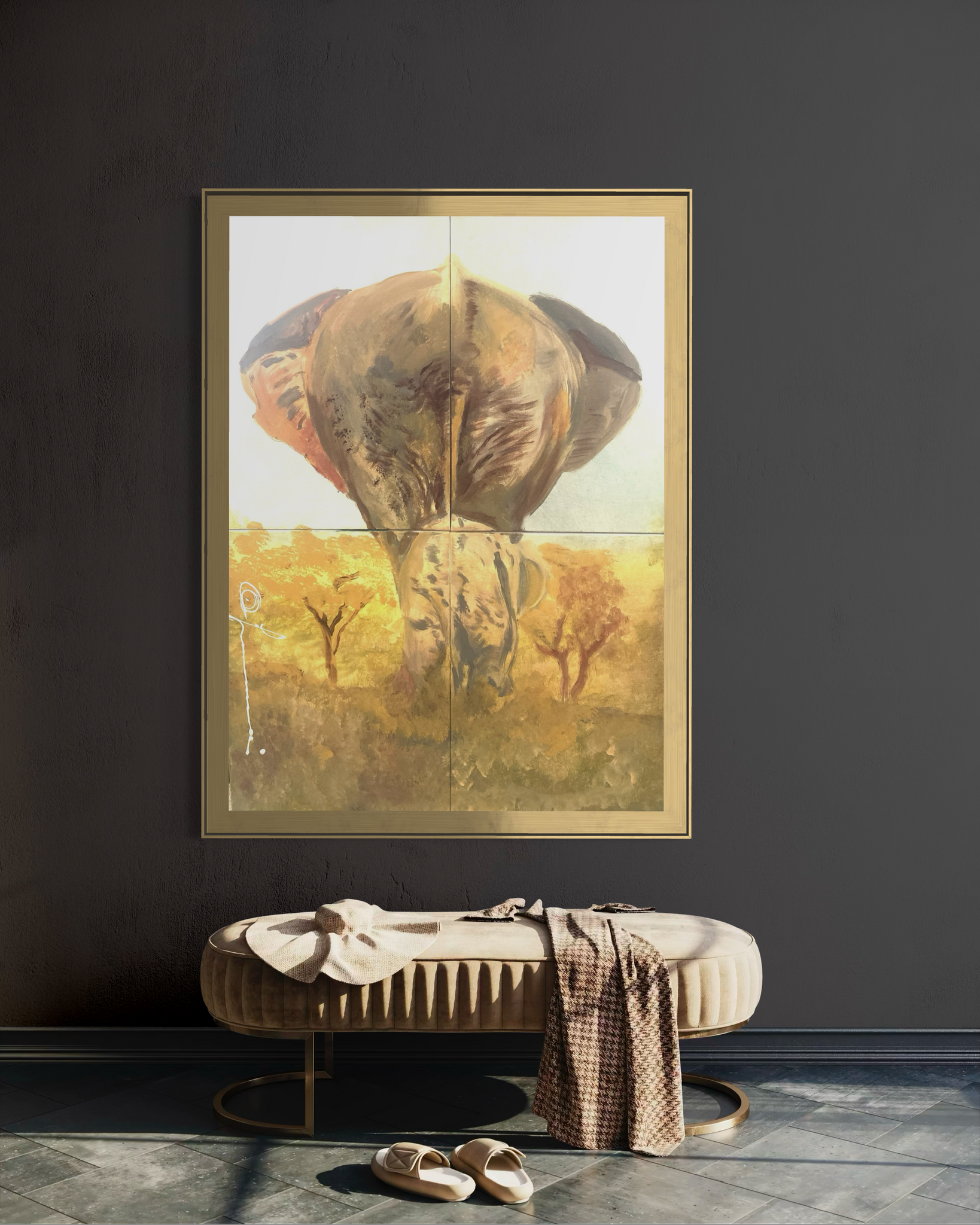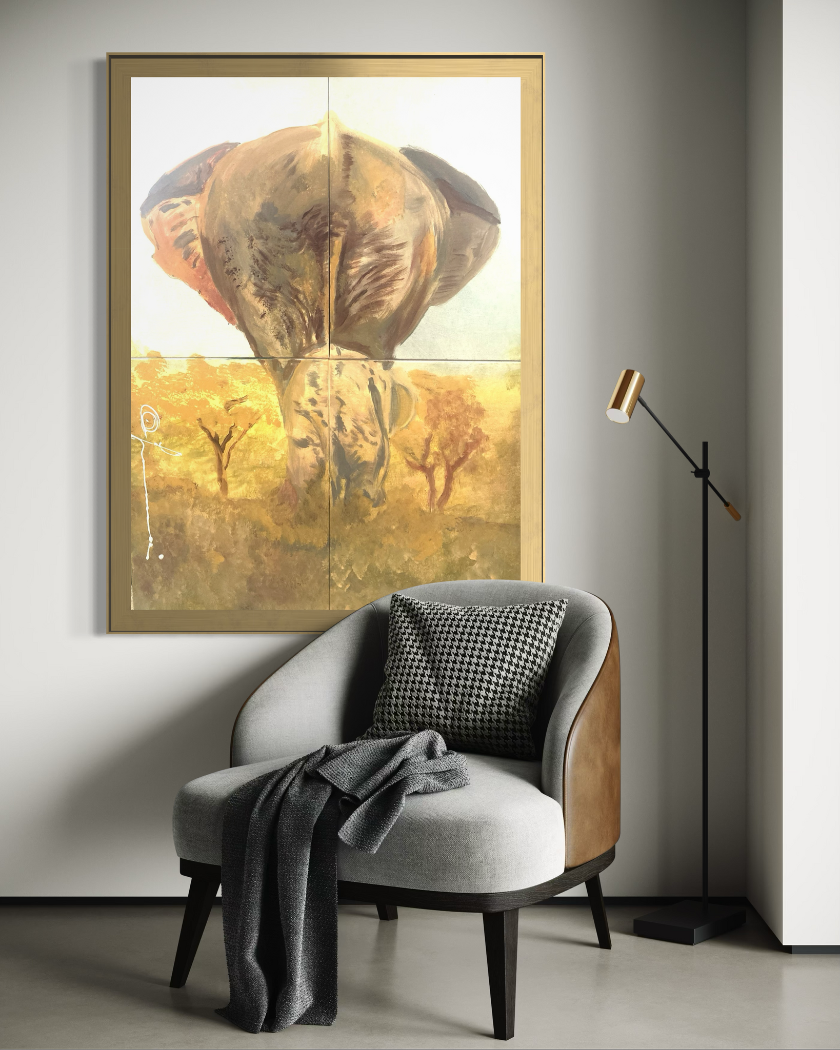 This painting is dedicated to the bond between a mother elephant and the calf. Did you know that the bond between a mother elephant and a calf is one of the strongest in the animal kingdom? Elephants are highly social and intelligent creatures, and their familial relationships are crucial for their survival and well-being.