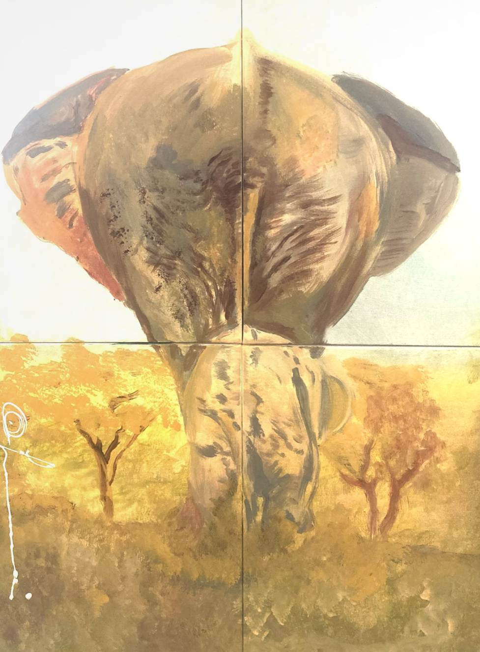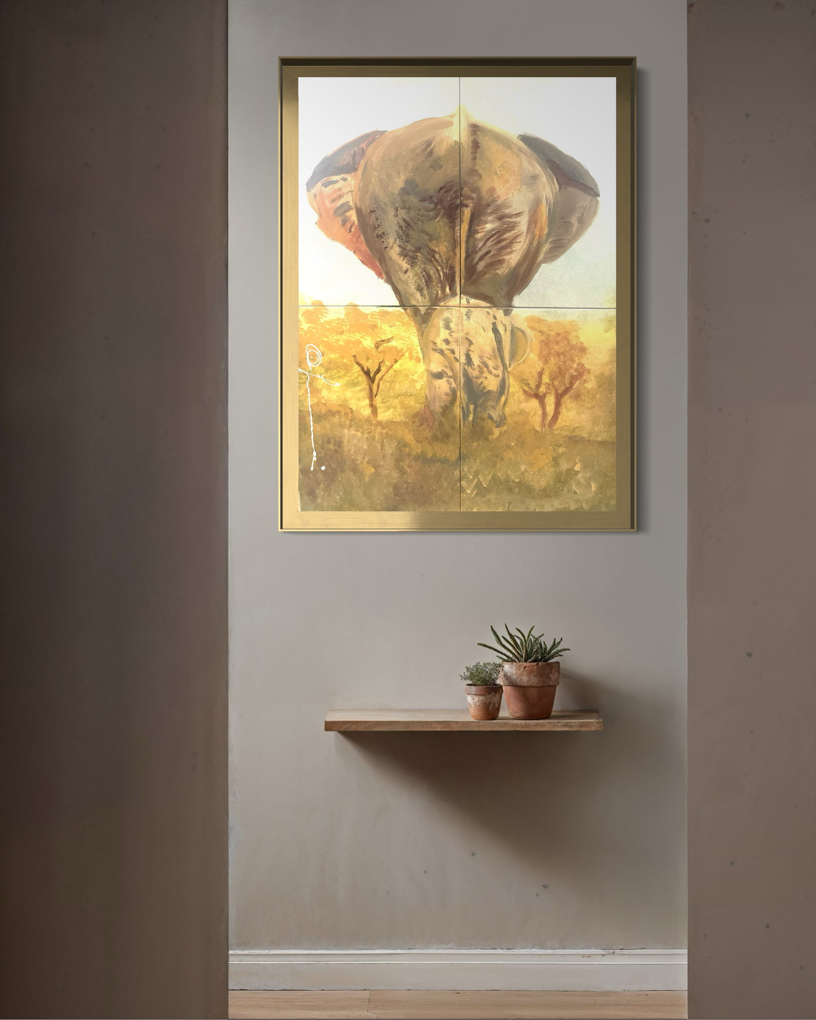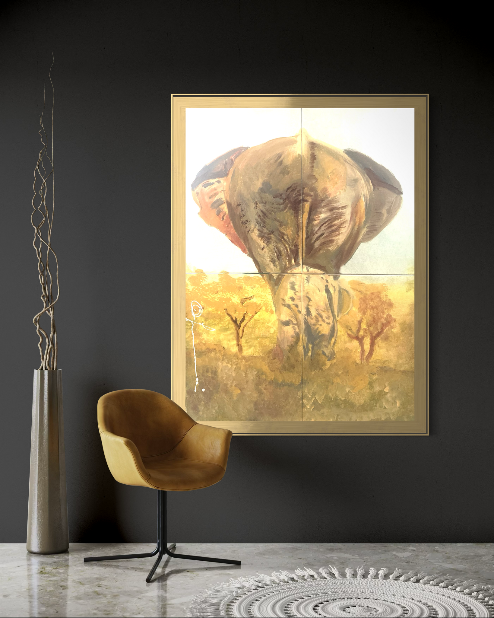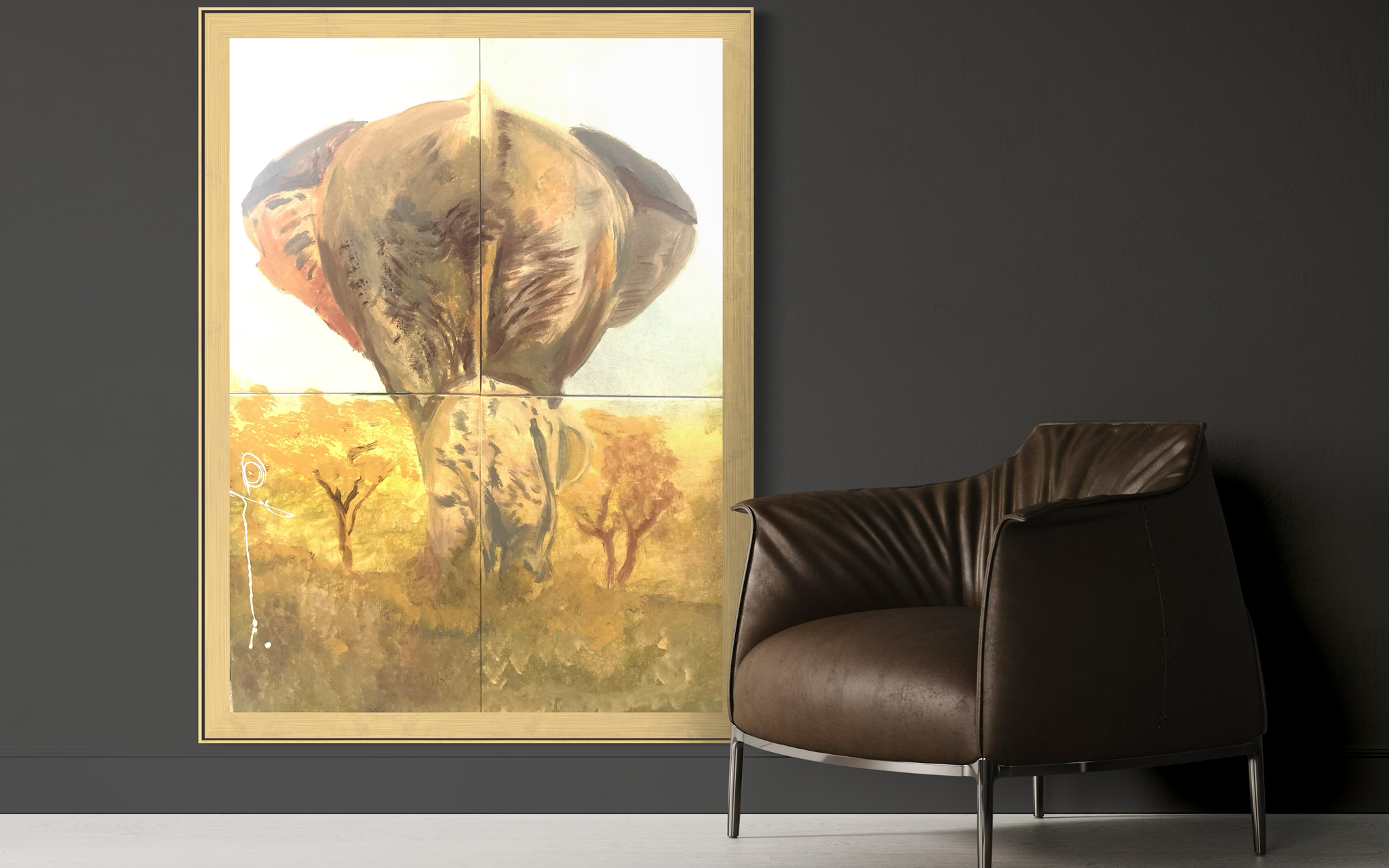 This painting is dedicated to the bond between a mother elephant and the calf. Did you know that the bond between a mother elephant and a calf is one of the strongest in the animal kingdom? Elephants are highly social and intelligent creatures, and their familial relationships are crucial for their survival and well-being.