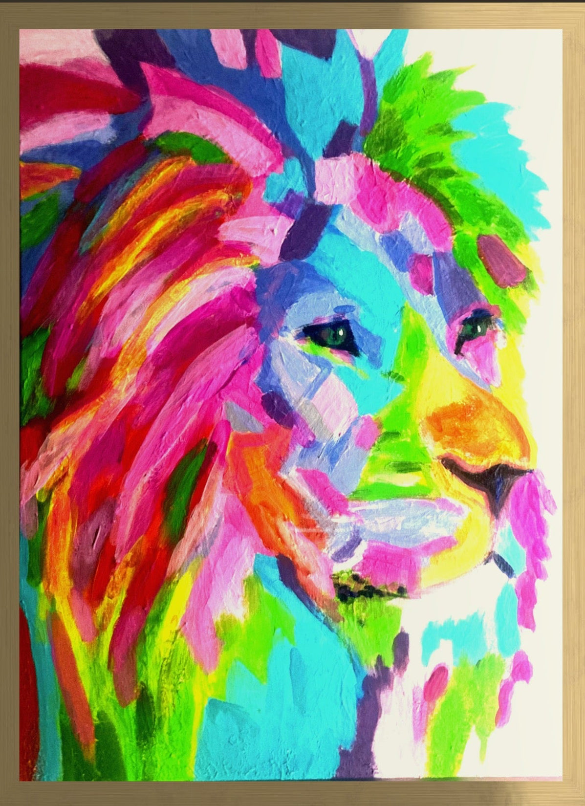 My painting, “Transgender Lion,” is a heartfelt tribute to the strength, courage, and resilience of the transgender community. I chose the lion as a symbol because it represents bravery and majesty, qualities that resonate with those who navigate the world with authenticity and pride in their true identities.